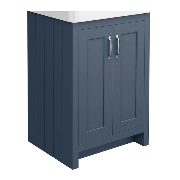 A replacement basin unit for the Chatsworth 560mm Blue vanity unit. Features classic styling with a matt blue finish and tongue-and-groove side panelling.