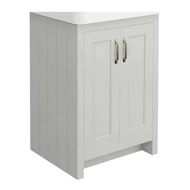 A replacement basin unit for the Chatsworth 560mm Grey vanity unit. Features classic styling with a matt grey finish and tongue-and-groove side panelling.