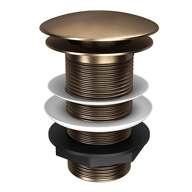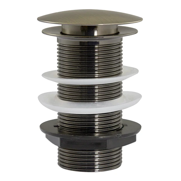 The Chatsworth Antique Brass unslotted click clack basin waste is constructed from durable material with a stylish smooth antique effect finish. Waste is controlled by a simple push button mechanism for that finishing touch in your bathroom and provides excellent performance. Designed for use with basins without an overflow. Combine with one of our matching Chatsworth Antique Brass Taps (sold separately) for a perfectly harmonious traditional bathroom.