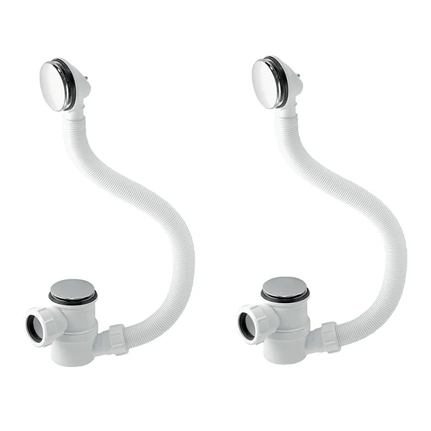 A 50mm Water Seal Swivel Bath Trap and Overflow, designed for use with out range of walk-in bath tubs which feature a twin waste. Assembly complete with top access Chrome Plated Brass Waste and Spring Loaded Mushroom Plug. Supplied in pairs with 36″ length overflow hoses.