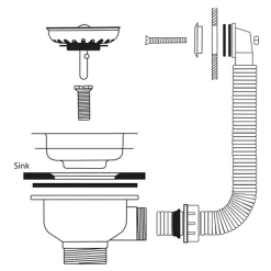 - Suitable for 1 or 2 bowl sinks with overflow outlet