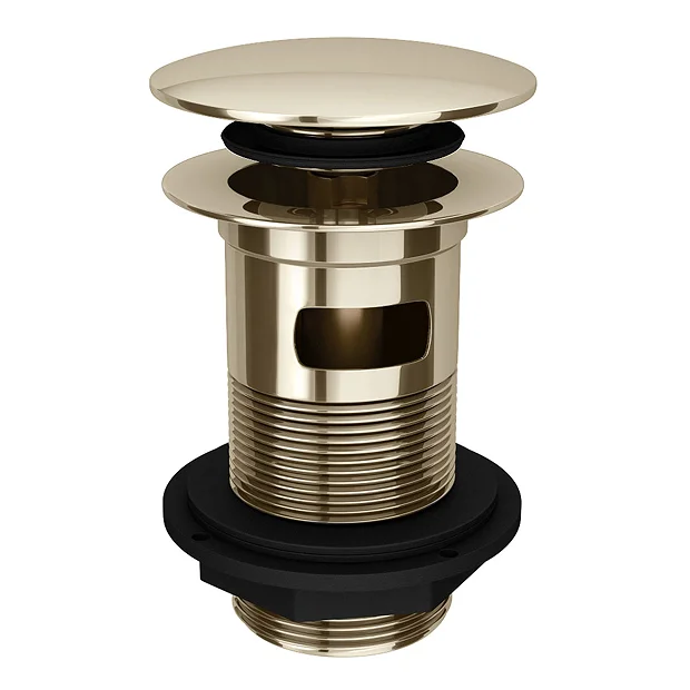 The slotted click clack basin waste is constructed from durable material with a stylish gold finish and features a push button operation. This gold basin waste is designed for use with basins with an overflow.