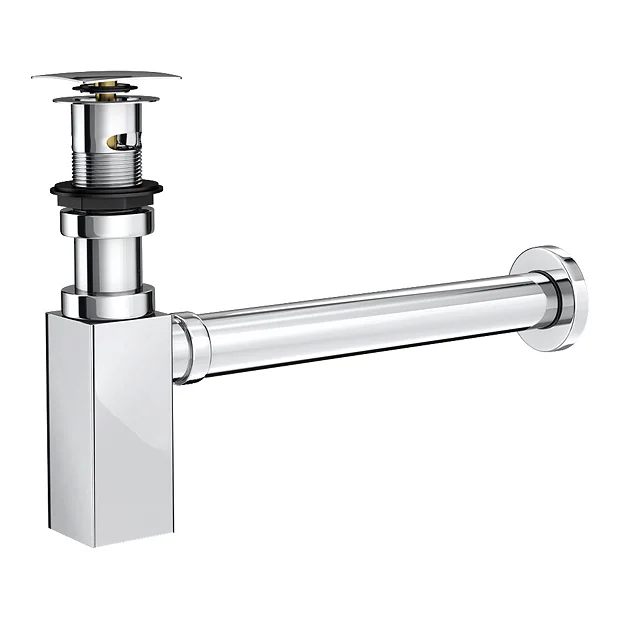 Modern Square Chrome Click Clack Basin Waste and Bottle Trap Package