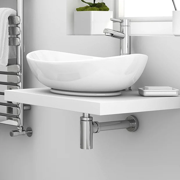 A modern round basin bottle trap in chrome plated solid brass with wall pipe and a round wall flange. Perfect for giving a modern contemporary look at a real value for money price.