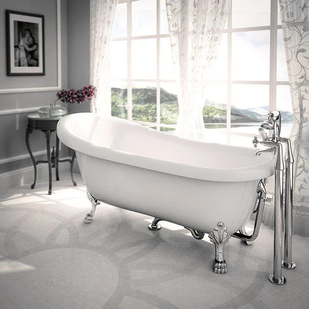 - For use with free standing roll top bath tubs